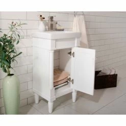 The Evarly, with its cabinet inlay, pillar detailing and fresh white finish, packs plenty of chic style into its compact stature. This single-sink vanity also features an integrated sink top and a spacious cabinet, making the most of its small size. The Evarly pairs seamlessly with transitional, contemporary and traditional designs.