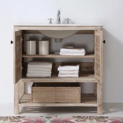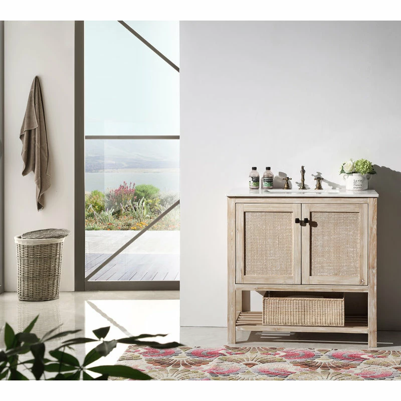 Wash up with a lighter touch by way of the Solid Single Vanity. A solid-wood cabinet is complemented by a white marble top, and two cabinet doors provide ample storage space for toiletries and other bathroom supplies. With sophisticated designs, this piece uses comfortable elegance to help you and your guests feel right at home.