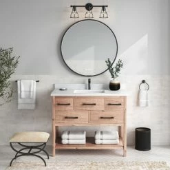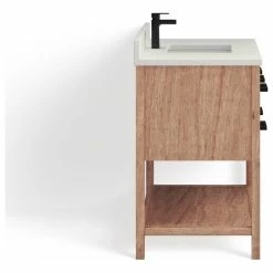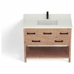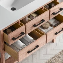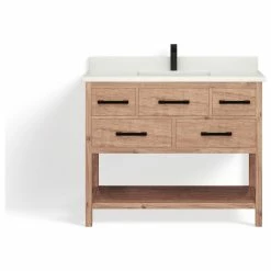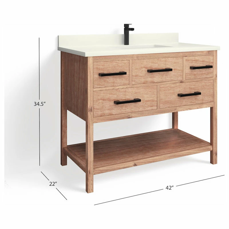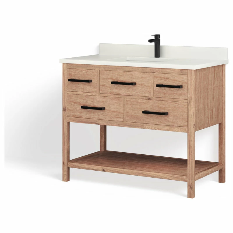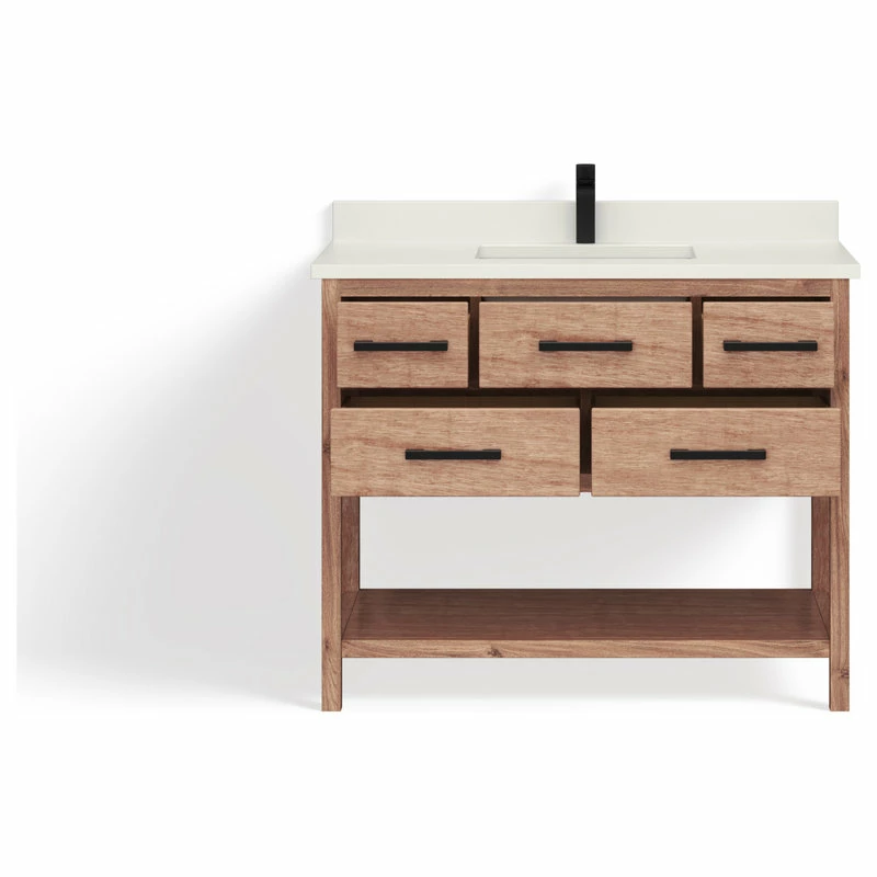 Whether your bathroom aligns with a modern minimalist aesthetic or a cozy traditional touch, the Adal single sink vanity is the perfect decorative chameleon. With a raised grain finish and a glossy quartz countertop, this expertly crafted vanity holds its own in any style setting. Storage space is nothing to be desired when you have plenty of soft-closing dovetailed drawers and a full lower realm of open shelving. Functional and gorgeous, the best of both worlds.
