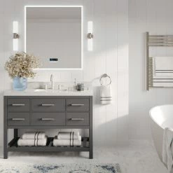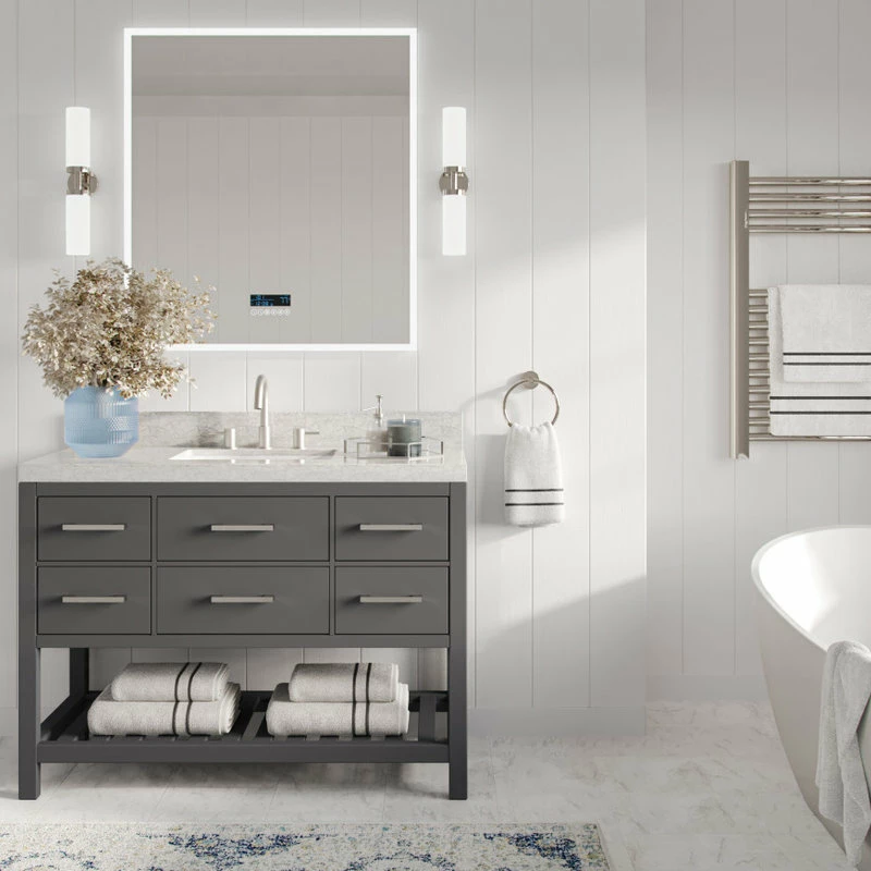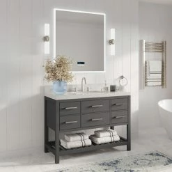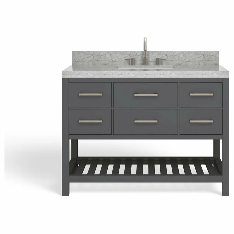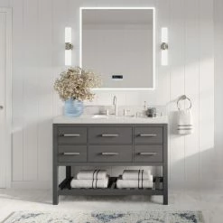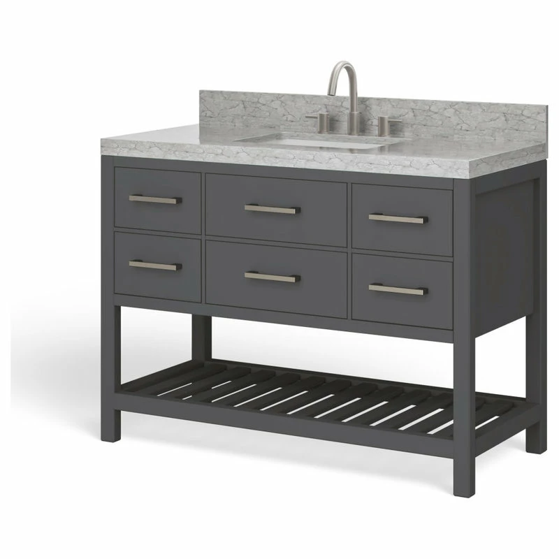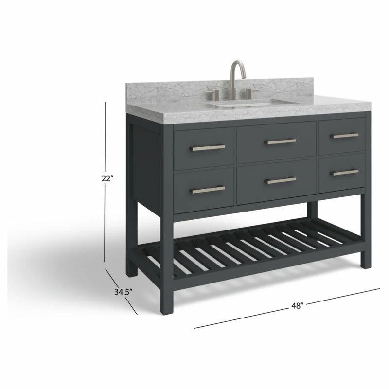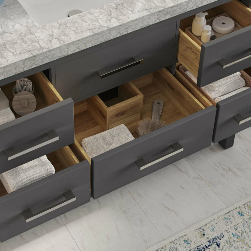 The Arcadia Bathroom Vanity is a transitional piece that pulls in a sense of tranquility to anyone looking for a peaceful yet sophisticated bathroom. You’ll find joy in the solid wood craftsmanship that’s apparent throughout the piece and best seen in the dovetail drawers and built-in legs, while thick natural stone counters and soft-close drawers reinforce that peaceful feeling. A serene bathroom awaits!