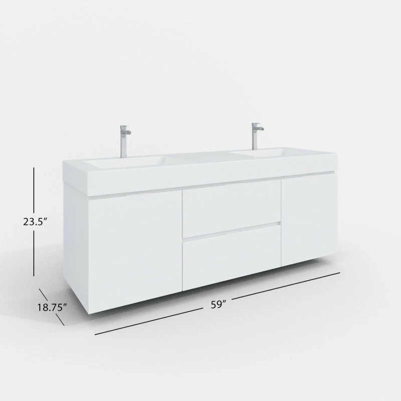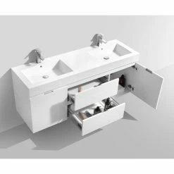 Wholesale ⌛ MOD Boutique Bath Vanity, High Gloss White, 60″, Double Sink, Wall Mount ⭐