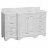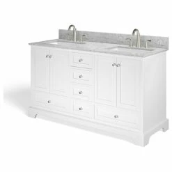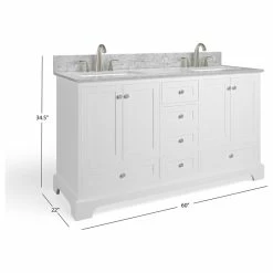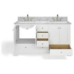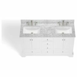 - Imported Italian Cararra white marble top with no front & sides edge seam (1 piece slab vs. 2 pieces with unattractive edge seam)