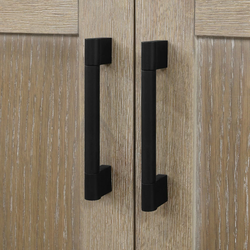 - White finish comes with Brushed Nickel hardware, while Driftwood Oak and Almond Latte finish comes with Black hardware