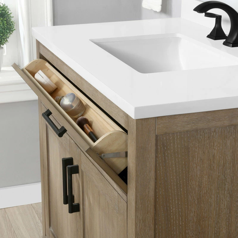 - Bailey vanity available in White, Driftwood Oak or Almond Latte finish