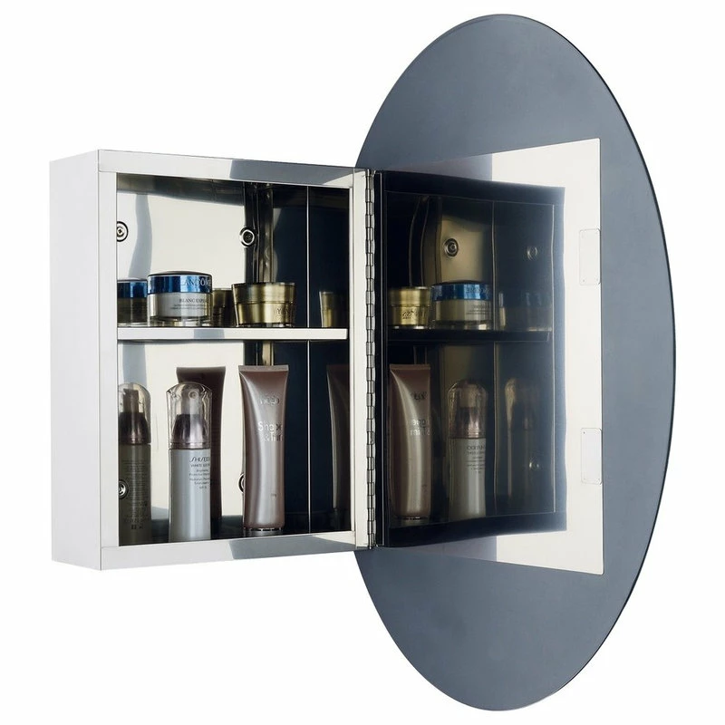 This elegant oval medicine cabinet door opens up to two interior shelves. It is manufactured out of 100% superior stainless steel material. It can be mounted as per your door preference – Open from RIGHT or LEFT!