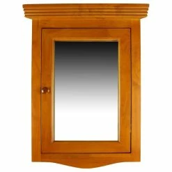 Item 14338 BETHPAGE CORNER WALL-MOUNT WOODEN MEDICINE CABINET WITH MIRROR Bethpage medicine cabinet from Renovators Supply is the ideal way to add some storage space in your bathroom corner with elegance. This corner wall-mount medicine cabinet features solid hardwood construction for longevity and durability in your medicine cupboard. Inside of Cabinet is Light Primed ready for you to paint in your favorite color. Corner cabinets use space efficiently to keep your bathroom from getting cluttered without losing cabinet storage space. Recessed framed mirror in door, it opens on the LEFT! FEATURES