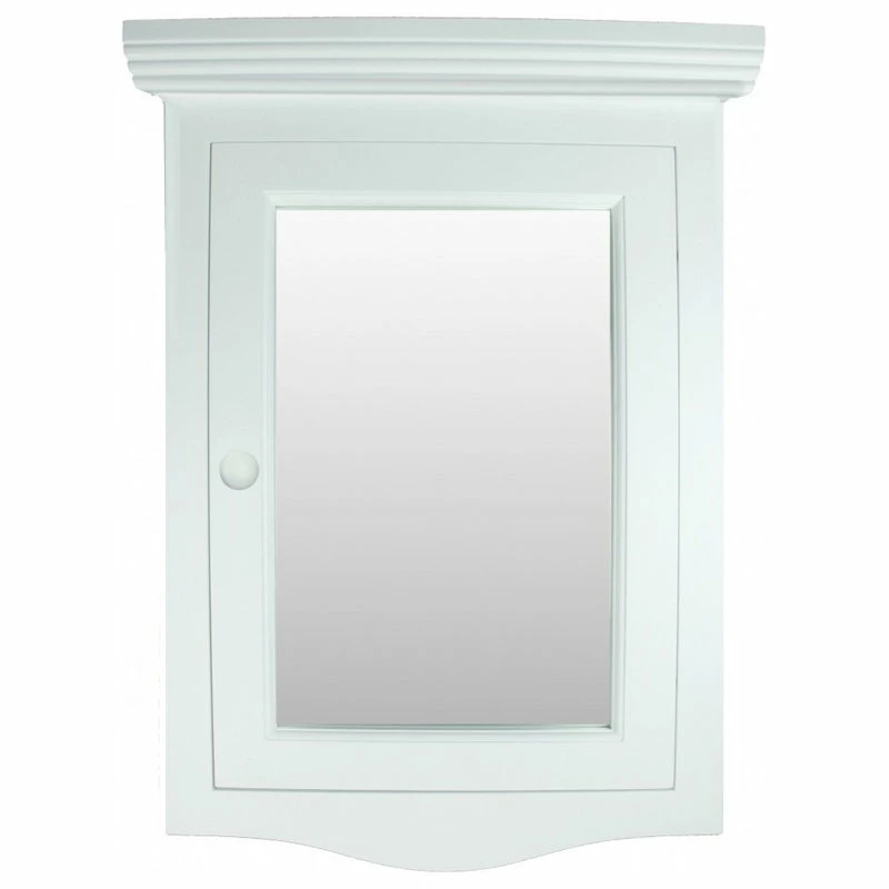 Item 17662 BETHPAGE CORNER WALL-MOUNT WOODEN MEDICINE CABINET WITH MIRROR Bethpage medicine cabinet from Renovators Supply is the ideal way to add some storage space in your bathroom corner with elegance. This corner wall-mount medicine cabinet features solid hardwood construction for longevity and durability in your medicine cupboard. Inside of Cabinet is Light Primed ready for you to paint in your favorite color. Corner cabinets use space efficiently to keep your bathroom from getting cluttered without losing cabinet storage space. Recessed framed mirror in door, it opens on the LEFT! FEATURES