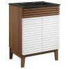 - Large storage compartment, back panel pre-cut opening for easy plumbing access