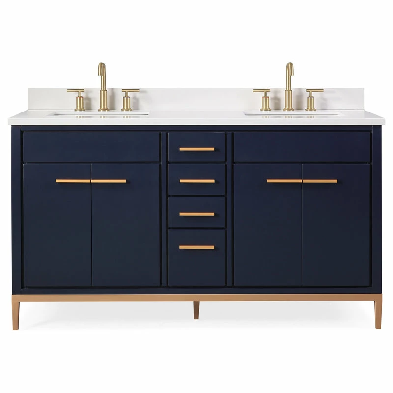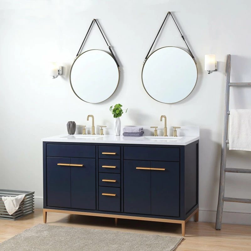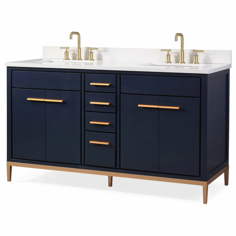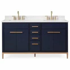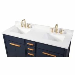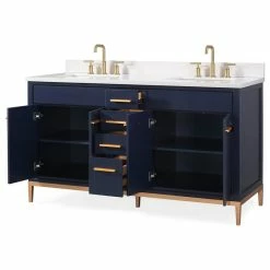 Style, function, versatility, thisΒ TBΒ Beatrice vanity will be the cornerstone of your bathroom, providing ample storage space for your essentials, 4 center column drawers and two half shelves compartment. Featuring clean lines, the TB embraces a transitional aesthetic that is timeless and pure. The trendy antique brass finish base accents with matching finish door/drawers pull to complete the look. The matching backsplash is available by request.