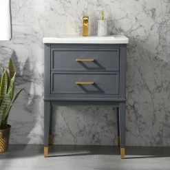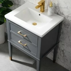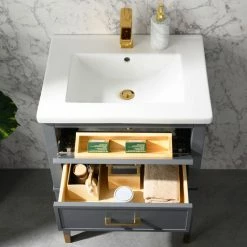 Promo ๐Ÿงจ Urban Furnishing Clara 24″ Single Bathroom Vanity In Gray With Porcelain Top โŒ›