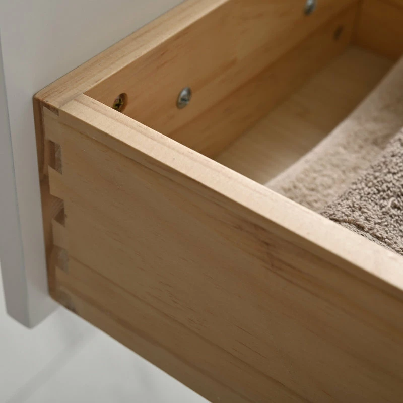 - Solid construction with English Dovetail jointed drawers and undermount slide