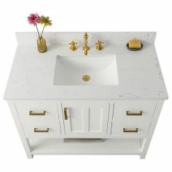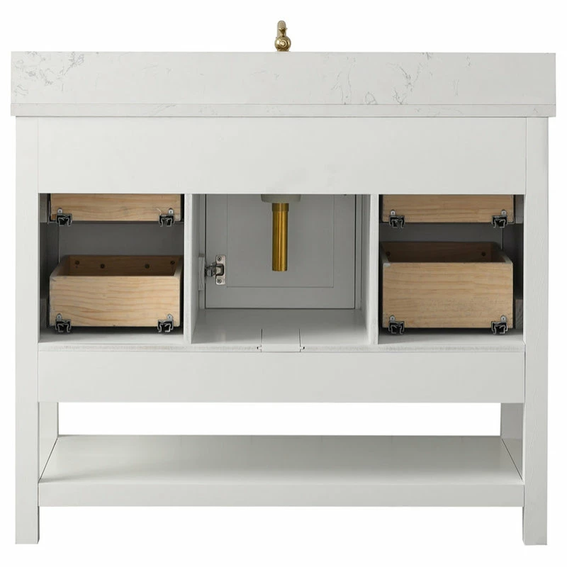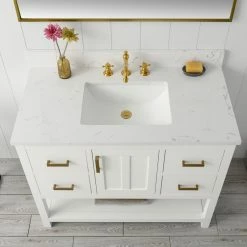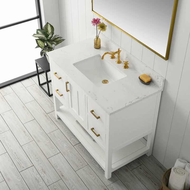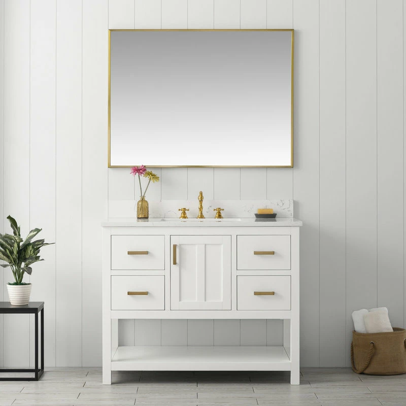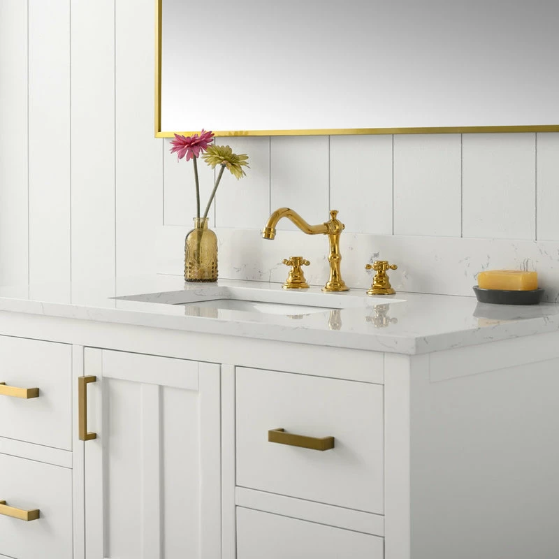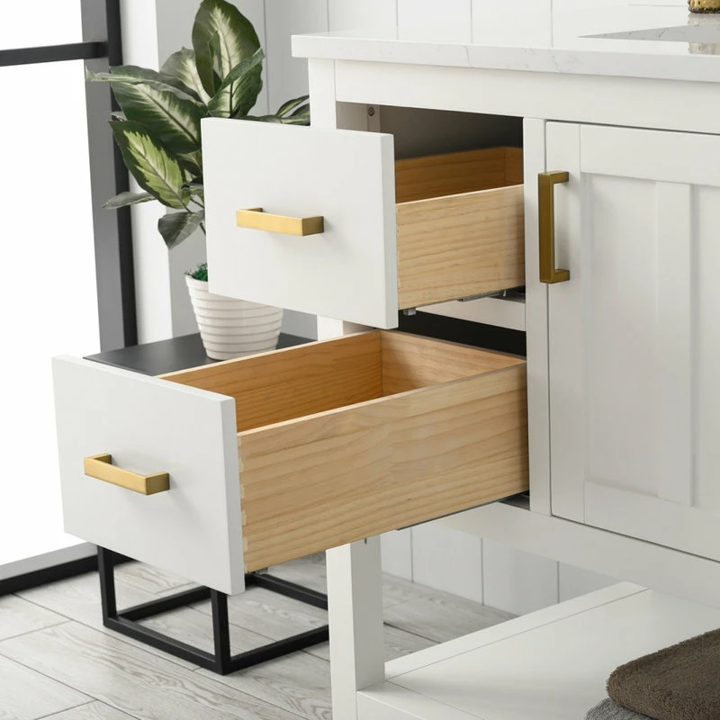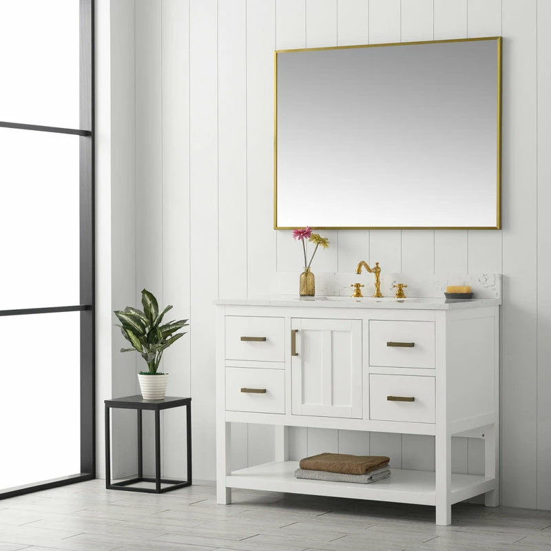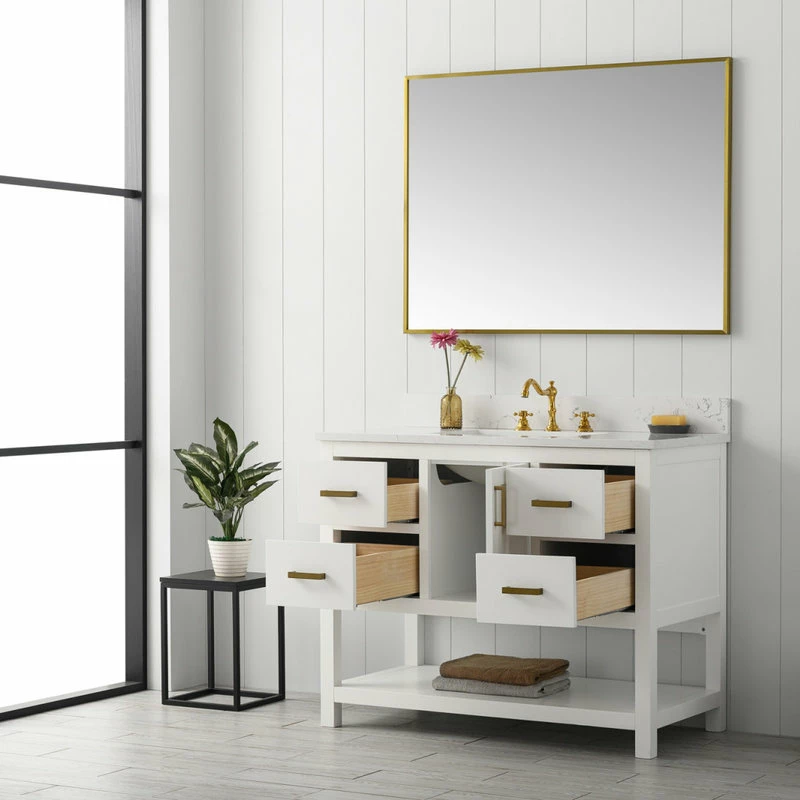 The Henry Bathroom Vanity Collection was inspired by modern design with sleek clean lines and cozy aesthetics. Premium quality construction with skillfully handcrafted finish. Features Brushed Gold hardware, dovetail joints, soft-closing drawers and doors, and many higher-end options. Available in 42″, 48″ and 60″.