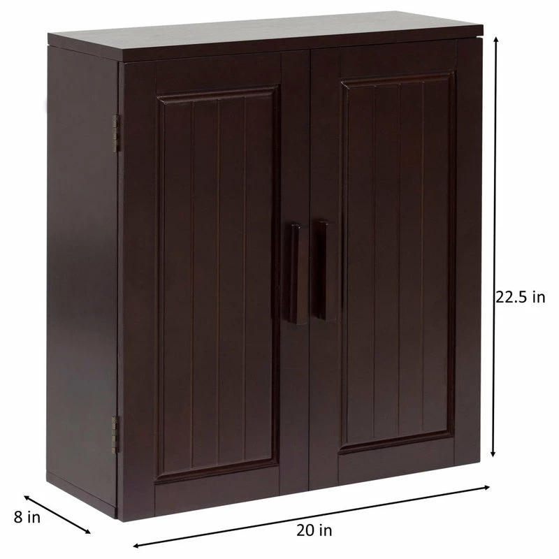 Upgrade your home storage while adding classic style with the Elegant Home Fashions Catalina Wooden Removable Wall Cabinet with 2 Doors. This stylish storage solution features a sleek espresso finish with 2 doors that come decorated with crown molding for a timeless addition to your space. The 2 included adjustable shelves provide ample storage to reduce clutter and keep your home tidy. Constructed from durable engineered wood, this wall cabinet is built to provide you with long-lasting organization. Easy, step-by-step instructions and all of the hardware needed are included for quick assembly. Purchase this stylish wall cabinet alone or with other items from the Catalina collection for a cohesive, updated look. The Elegant Home Fashions Catalina Wooden Removable Wall Cabinet with 2 Doors measures 8″ x 20″ x 22.5″ to provide removable storage without taking up too much space in your living area.
