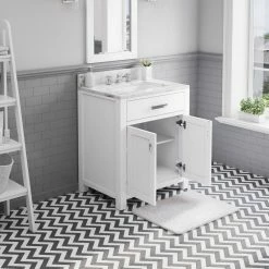 Bring sophistication to your bathroom with the Madison Bathroom Vanity. In a piece of superior craftsmanship, this high-class vanity is made of solid wood, stunning Italian Carrara marble and gleaming ceramic. This sturdy vanity comes in various sizes and has the option of one, two or no mirrors and faucets. Water Creation pairs timeless designs with modern, innovative manufacturing processes.