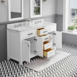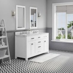 Bring sophistication to your bathroom with the Madison Pure White Bathroom Vanity. In a piece of superior craftsmanship, this high-class vanity is made of solid wood, stunning Italian Carrara marble and gleaming ceramic. This sturdy vanity comes in various sizes and has the option of one, two or no mirrors and faucets. Water Creation pairs timeless designs with modern, innovative manufacturing processes.