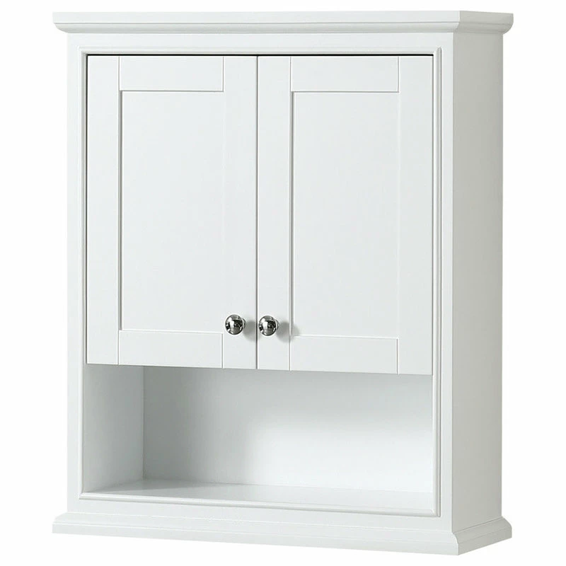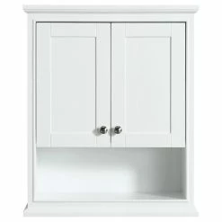 - Beautiful transitional styling that complements any bathroom. Modern Wall-Mount Design. Minimal assembly required. Three (3) storage levels. Two (2) soft-close doors.