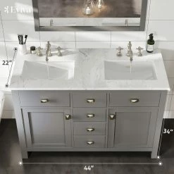Best reviews of โ Eviva LLC Totti Artemis 44″ Gray Transitional Double Sink Bathroom Vanity ๐ฅ